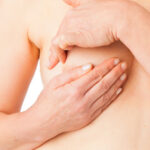 Junge Frau während einer völlig schmerzlosen Ultraschalluntersuchung der Brust.