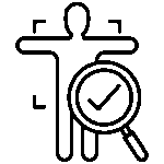 Gezeigt wird eine Frau mit nacktem Rücken während der orthopädischen Untersuchung. Zur Illustration ist die Wirbelsäule erkennbar aufgemalt.