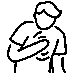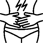 Das Foto zeigt eine junge Frau die sich die rechte Flanke beziehungsweise den Unterbauch schmerzgeplagt hält.