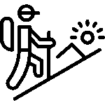 Eine Gruppe von Wanderern wandert unter klarem blauen Himmel einen schroffen Bergpfad hinauf, in Richtung schneebedeckter Gipfel. Die Bergsteiger sind mit Rucksäcken und Trekkingstöcken ausgestattet und bewegen sich durch eine atemberaubende