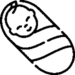 Gezeigt wird ein Neugeborenes Baby das von der Mutter oder dem Vater fest am Po gehalten wird.