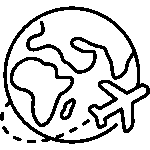Symbolbild einer Weltkugel mit Aeskulapstab in blauer Farbe, darunter die Worte Reisemedizin Frankfurt am Main.
